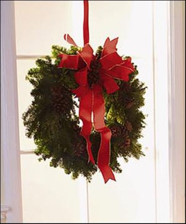 A Holiday tradition! This bushy wreath made from a blend of natural winter foliages, trimmed with ribbons and cones, makes a perfect gift, or addition to your own home or office décor. (~17′ diameter)