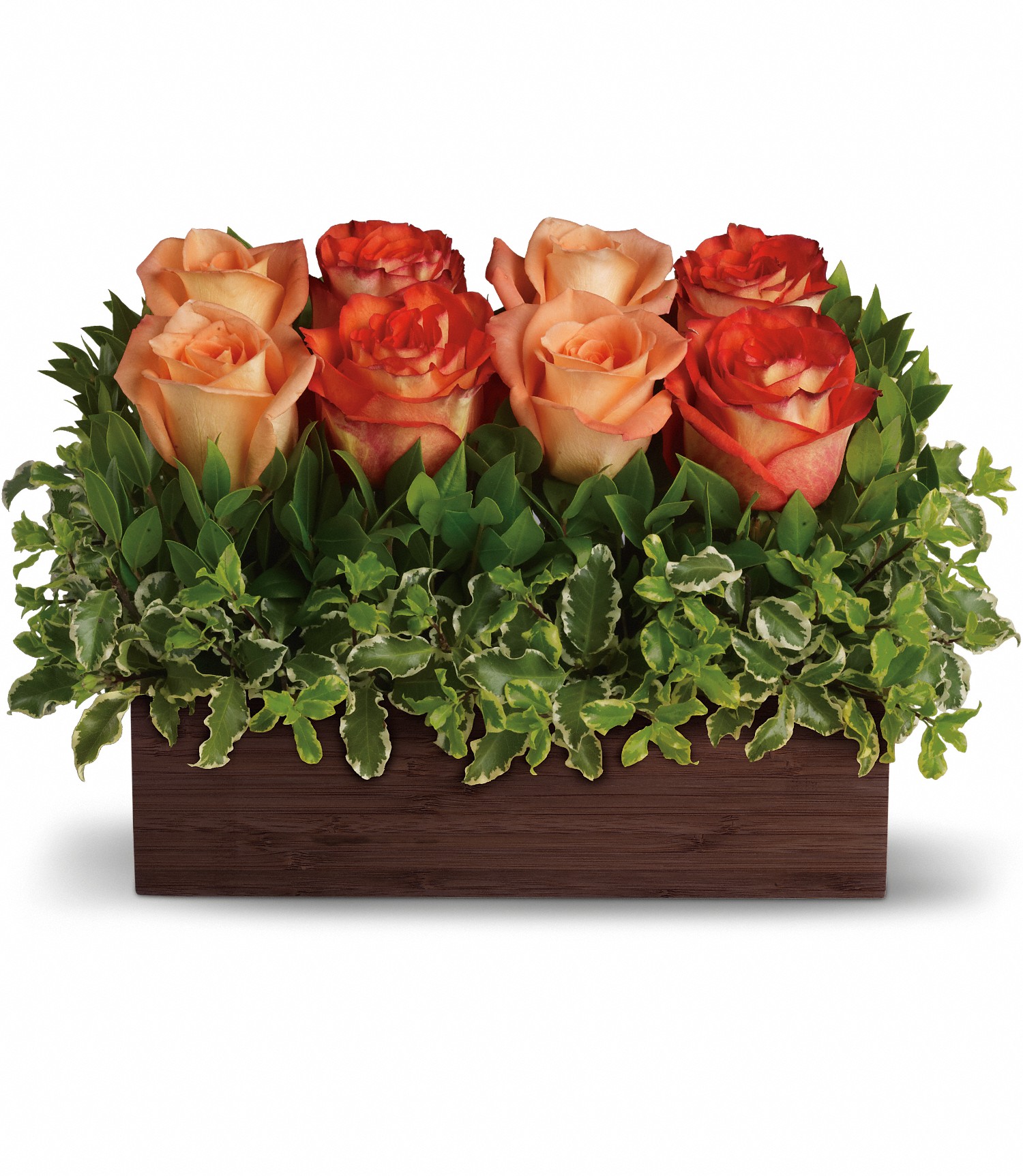 This contemporary piece displays the beauty of large roses in a modern, yet natural, style. A pretty show-stopper perfect for home or office.