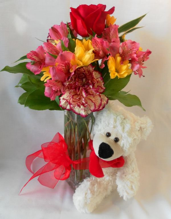Enhance your bouquet with additional similar flowers, matching fillers, and foliages.Container style may vary.